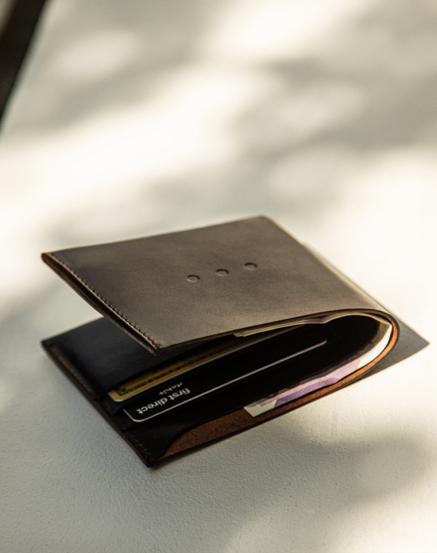 Subtle branding that allows the craftsmanship and leather to stand out.